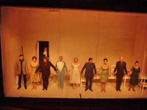 U predstavi Pir malograđana igrali su: Matija Stipanič, Maša Židanik, Peter Boštjančič, Nejc Ropret, Mateja Pucko, Vladimir Vlaškalić, Ksenija Mišič, Davor Herga, Irena Varga (s lijeva nadesno).