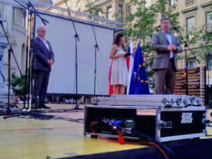Predsjednik Slovenskog doma i VSNM GZ Darko Šonc, voditeljica programa Ivana Šundov Hojan i veleposlanik RS u RH Vojko Volk (s lijeva nadesno). Foto: a.k.m.