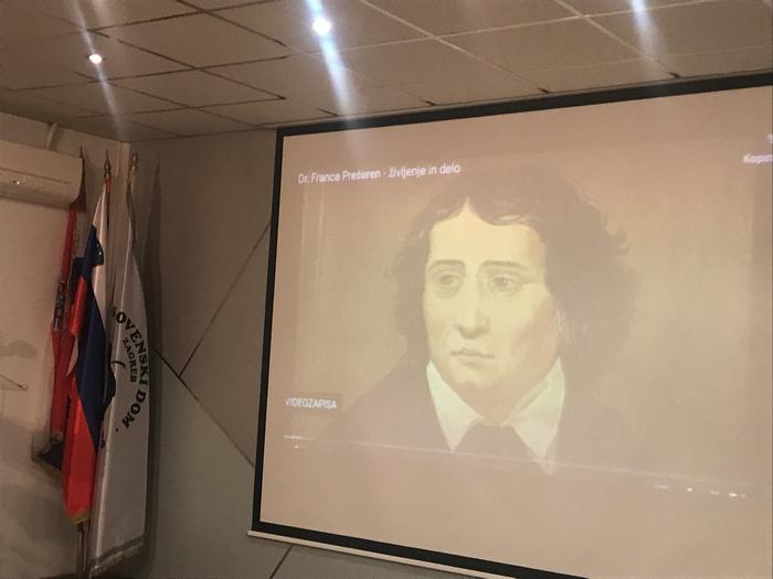 Dokumentarnim filmom Dr. France Prešeren – život i djelo, u Slovenskom domu Zagreb, završeno je obilježavanje slovenskoga kulturnog praznika. Mnogobrojne posjetitelje u Prešernovoj dvorani pozdravio je i čestitao slovenski kulturni praznik, predsjednik Slovenskoga doma Zagreb i VSNM GZ, Darko Šonc.