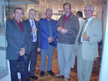 Tajnik Vijeća češke nacionalne manjine Grada Zagreba Jaromil Kubiček, dekan Fakulteta prometnih znanosti iz Zagreba Ernest Bazijanac, izaslanik zagrebačkog gradonačelnika Željko Zaninović, ravnatelj Tehničkog muzeja iz Zagreba Davor Fulanović i prof. dr. sc. Stanislav Pavlin s Fakulteta prometnih znanosti, Zagreb. (s lijeva, nadesno).