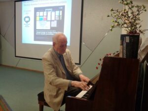 Dugogodišnji član Društva, Zoran Šonc doprinio je ugodnoj atmosferi na otvorenju izložbe, svojim umijećem sviranja na klaviru. (akm)