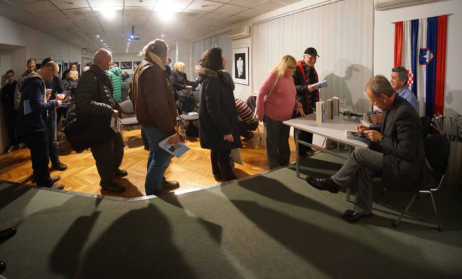 Na promociji su bili: Darko Šonc, predsjednik Vijeća slovenske nacionalne manjine Grada Zagreba, Kristina Kliner, ministrica savjetnica u Veleposlanstvu Republike Slovenije u Republici Hrvatskoj, Darko Berljak, tajnik Hrvatskog planinarskog saveza, Marko Vuković i Željko Žarak iz Hrvatskog planinarskog društva Željezničar iz Zagreba, inicijatori programa “Penjati se mora” kojima je cilj sustavno pomagati projekte obrazovanja alpinista u Hrvatskoj. Tekstove iz knjige je čitao glumac Vedran Mlikota.