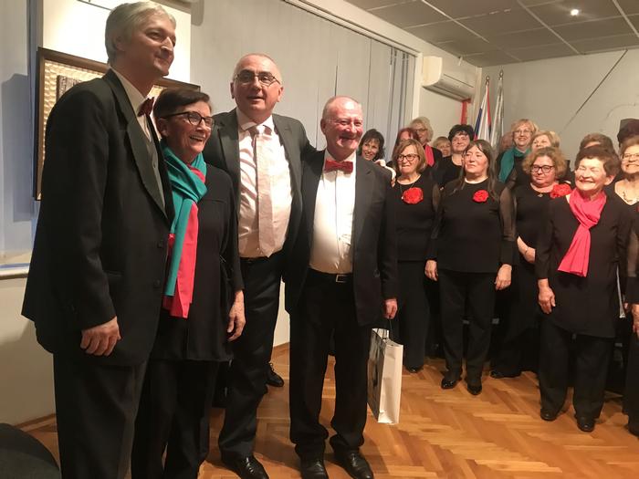 - Dirigent MePZ Logatec, Lovro Grom, predsjednica pjevačkog zbora Slovenski dom Zagreb, Stanka Herak i dirigent Ivica Ivanović te predsjednik MePZ Logatec, Tone Jerina (s lijeva).