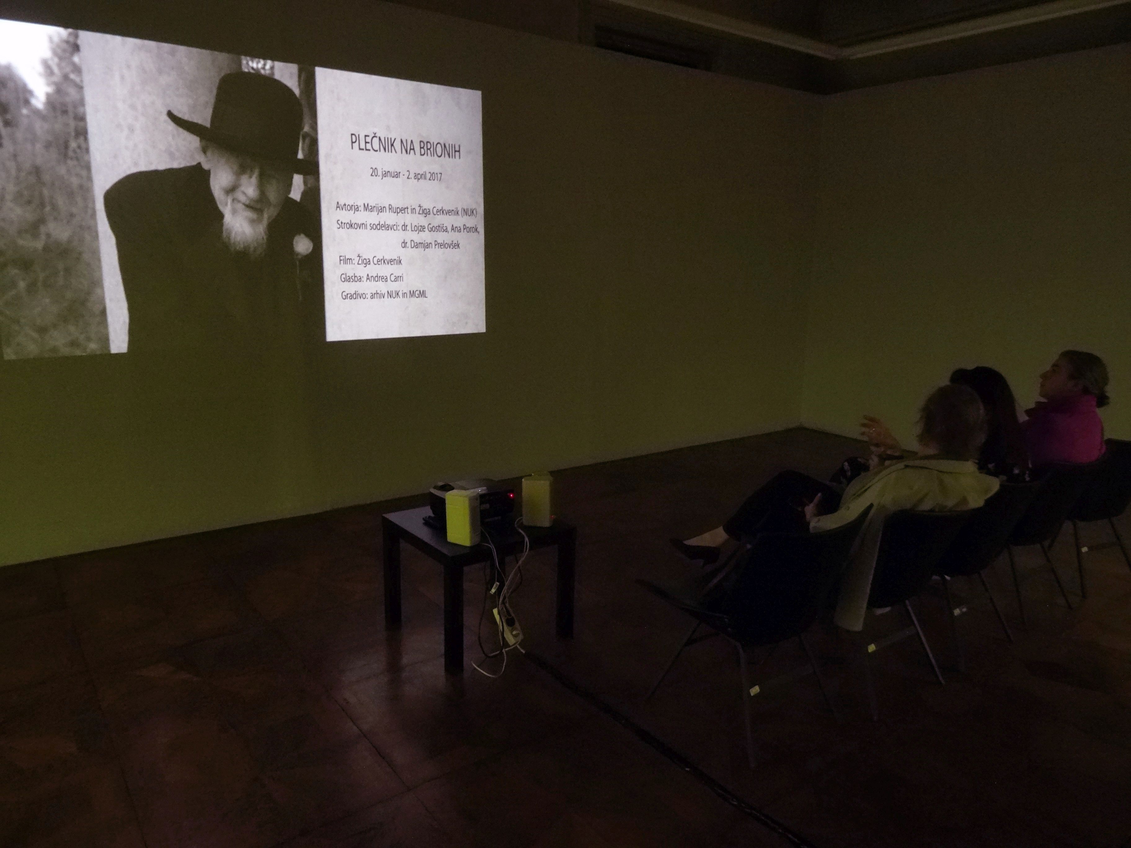 Nakon predavanja održano je otvorenje izložbe Plečnik na Brijunima, koju su pripremili Plečnikova hiša i rukopisni odjel Nacionalne i sveučilišne knjižnice Ljubljana koji je građu dobio dragocjenom donacijom dr. Lojzea Gostiše. Izložba otkriva izvorne nacrte paviljona i fotografije Plečnikovih posjeta Brijunima koje javnost do ove godine nije poznavala. Među tim fotografijama su i posljednji Plečnikovi portreti, snimljeni u jesen 1956. Osobito dragocjeno je i svjedočenje dr. Gostiše o okolnostima koje su utjecale na provedbu ovoga projekta koji ujedno predstavlja simbolički Plečnikov testament.