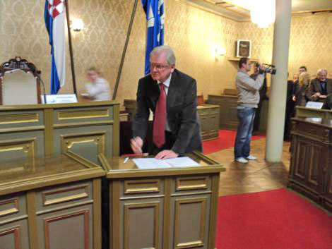 Predsjednik Vijeća slovenske nacionalne manjine Grada Zagreba potpisuje sporazum o osnivanju Koordinacije nacionalnih manjina Grada Zagreba.Foto: m.m.b.