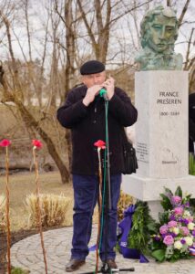 Vijenac su tradicionalno položili predsjednik Slovenskoga doma Zagreb i Vijeća slovenske nacionalne manjine Grada Zagreba, Darko Šonc i veleposlanik Republike Slovenije u Hrvatskoj, Gašper Dovžan koji se obratio okupljenima istaknuvši značaj Franca Prešerna za slovensku kulturu te čestitao slovenski kulturni praznik pripadnicima slovenske zajednice i svim nazočnima, među kojima je bila i Mirela Mulić, savjetnica-izaslanica predsjednika Republike Hrvatske za ljudska prava i civilno društvo. Polaganje vijenaca uveličano je recitalom Prešernove poezije: članica Slovenskoga doma Zagreb, Agata Klinar Medaković recitirala je Magistrale, dok je kazališni, televizijski i filmski glumac Zlatko Ožbolt kazivao stihove pjesme, Oproštaj od mladosti, uz glazbenu točku na usnoj harmonici u izvedbi člana Slovenskoga doma Zagreb, Marjana Dirnbeka. (akm)
