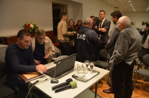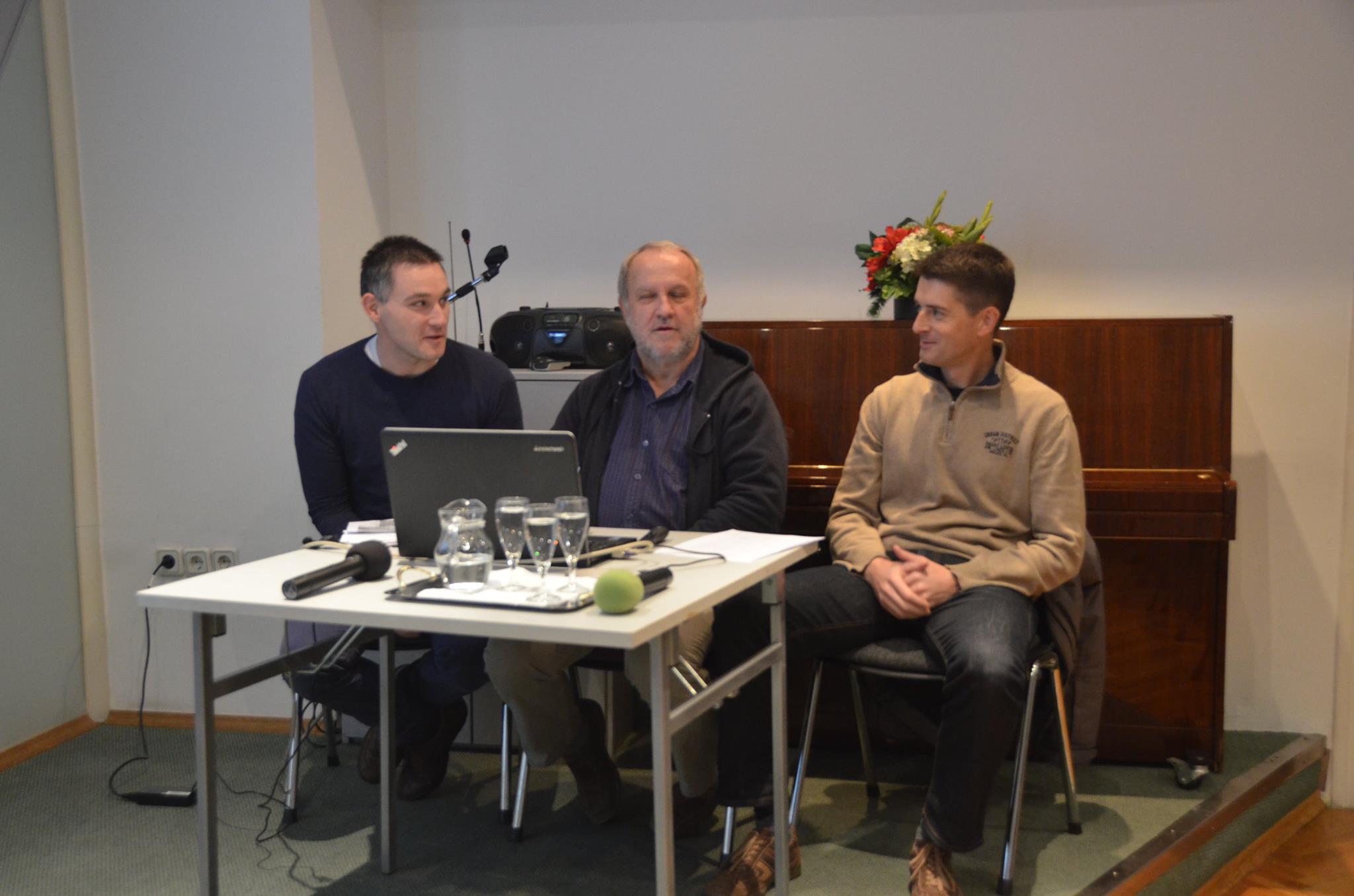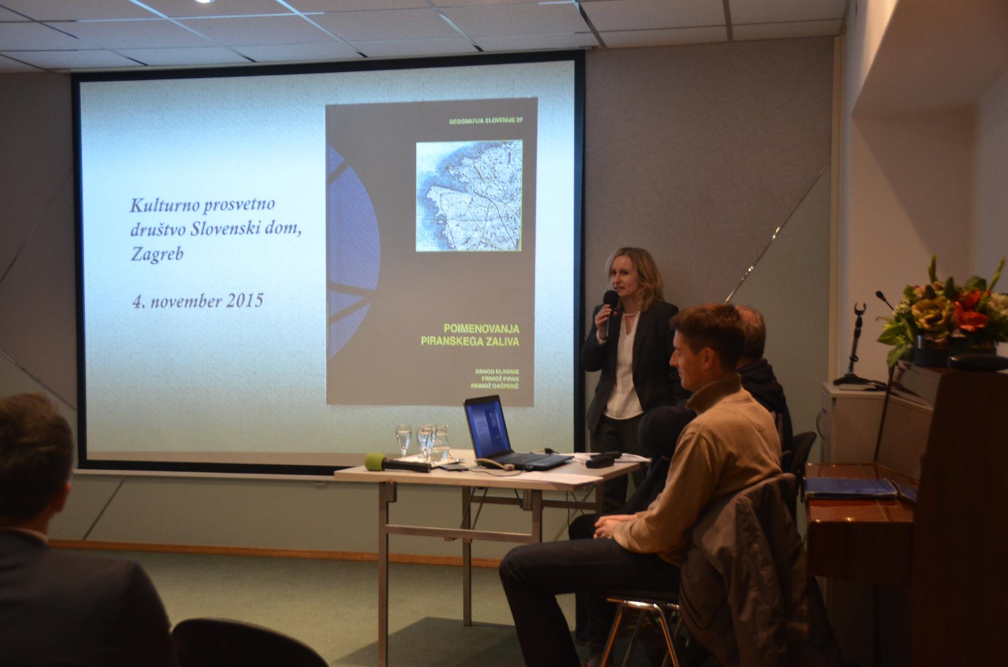 Zagreb – 4. studenoga 2015.   Stručnjaci Geografskog instituta Antona Melika, znanstveno istraživačkog centra Slovenske akademije znanosti i umjetnosti iz Ljubljane, Drago Kladnik, Primož Pipan i Primož Gašperič, predstavili su u Slovenskome domu svoju knjigu „Poimenovanja Piranskega zaliva“. Predstavljanju su nazočili i predstavnici slovenskoga veleposlanstva i hrvatski novinari. (akm)