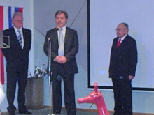 Nazočne je pozdravio veleposlanik Republike Slovenije u Hrvatskoj Vojko Volk, koji je otvorio ozložbu. Posebno se osvrnuo na važnost koju Slovenci pridaju tom kulturnom prazniku, naglasivši kako je “bilo razdoblja kad Slovencima nije bilo lako”, ali njihova ih je kultura uvijek okupljala i predstavljala neupitnu konstantu i vrijednost. U svoje ime i u ime slovenskog veleposlanstva s neskrivenim je zadovoljstvom čestitao Darku Šoncu na odlikovanju – Redu za zasluge, kojim ga je danas u predvečerje slovenskog kulturnog praznika odlikovao predsjednik Danilo Türk. Red za zasluge dobio je za doprinos očuvanja slovenske kulture i jezika u Hrvatskoj, za uspjehe pri povezivanju Slovenaca u Hrvatskoj te jačanju dobrih odnosu između Slovenije i Hrvatske.