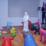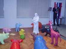 - Denis Kraškovič: Sveti Franjo razgovara sa životinjama. Metal, obojeni poliester i kamen – oniks, 2009. Foto: a.k.m.