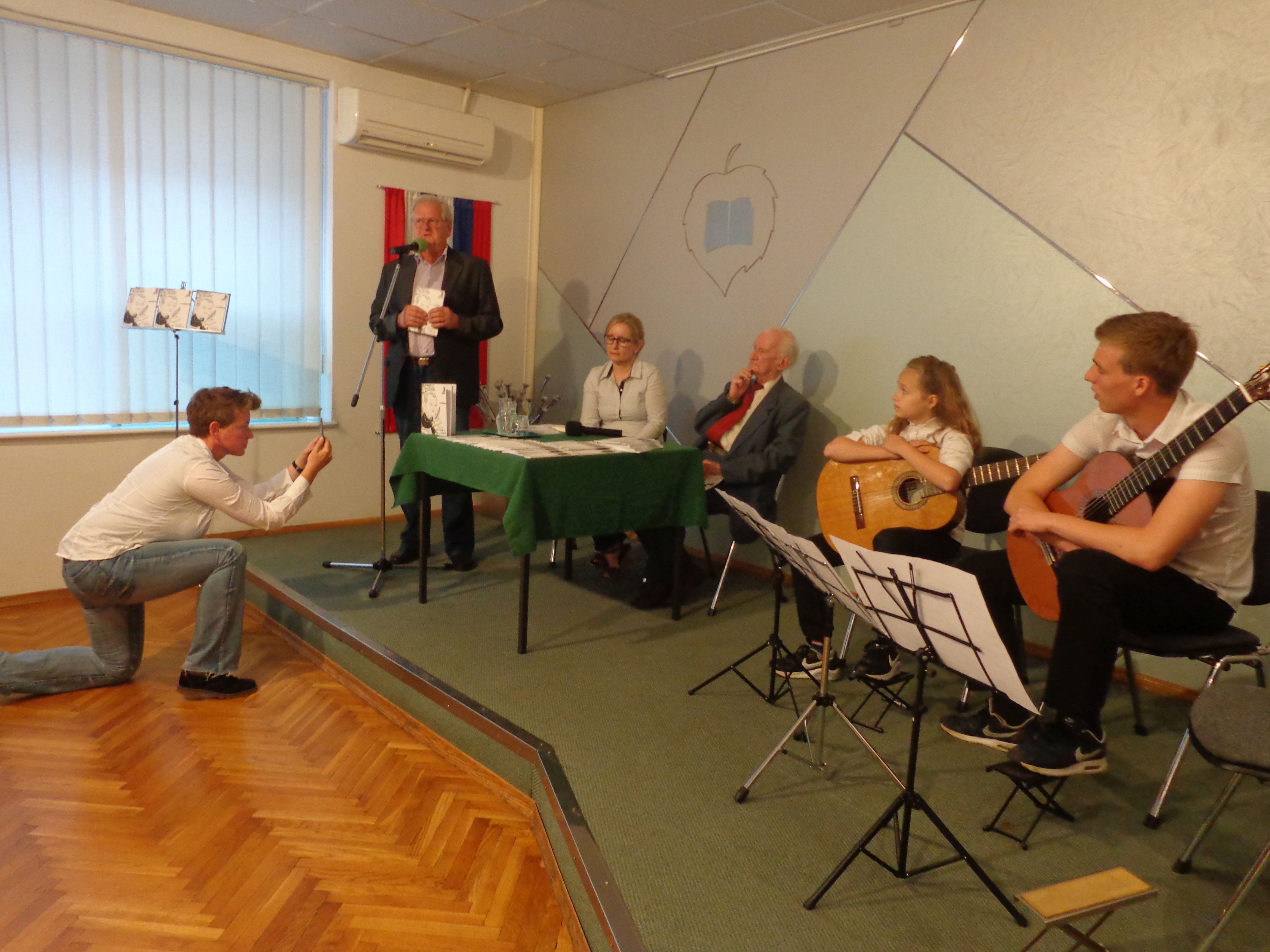 Zagreb – 20. lipnja 2016. Jedan od najdugovječnijih članova Slovenskoga doma i bivši član VSNM GZ, Silvin Jerman predstavio je svoju zbirku pjesama Misli u samoći koju je posvetio pokojnoj supruzi. Mnogobrojni prijatelji, rodbina i članovi Slovenskoga doma iskrenim i velikim aplauzom popratili su promociju, kao i melodije koje su na gitari izveli učenici Glazbene škole Karlovac, Dora i Josip Spudić zajedno s mentoricom prof. Tenom Bunčić. (akm)