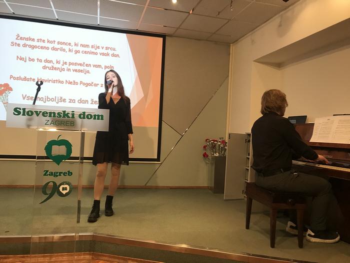 U čast Međunarodnog dana žena, Slovenski dom Zagreb bio je domaćin nezaboravne večeri koja je spojila kulturu i slavlje. Predsjednik Slovenskoga doma Zagreb, Darko Šonc srdačno je pozdravio posjetitelje koji su svojim dolaskom uveličali ovaj poseban dan. Na pozornici su se predstavila dva izuzetna talenta, studenti Muzičke akademije u Zagrebu – Neža Pogačar i Vitomir Janez Zagode. Neža je očarala publiku svojim prekrasnim vokalom, a Vitomir je pratio svaku njenu notu na klaviru. Prešernova dvorana bila je ispunjena melodijama i pljeskom kada su izveli vječne melodije poput Med iskrenimi ljudmi, Mlade oči, Orion i Brez besed. Svaka je izvedba bila primljena s oduševljenjem i nagrađena velikim pljeskom. Nakon glazbenog programa, predsjednik je u znak poštovanja, ženskom dijelu publike podijelio crvene karanfile. Večer je nastavljena druženjem u ugodnoj atmosferi Kluba Moja dežela, gdje su se sklapale nove veze i evocirale uspomene. Druženje je zaključeno zajedničkom fotografijom, koja će nam ostati u trajnoj uspomeni na prekrasno slavlje. (nk)