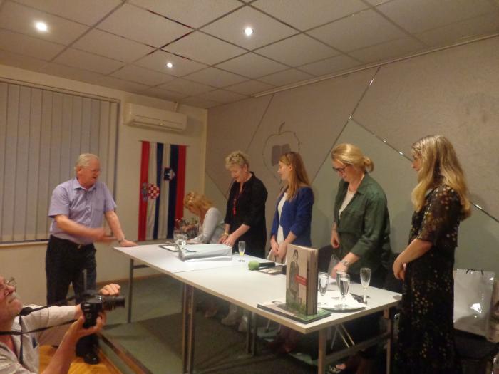 - Vodja oddelka za južnoslovanske jezike in književnosti na Filozofski fakulteti v Zagrebu dr. sc. Anita Peti-Stantić, Tihana Škrinjarić, Vladimira Spindler, Manca Grgić Renko, Sanja Pilić, Smiljana Knez, Tanja Borčić Bernard (z leve).