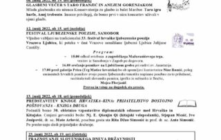 Na festivalu ljubezenske poezije Vrazova Ljubica, ki od leta 1990 poteka v Samoboru, v spomin na Julijano Cantilly (1812-1842), znamenito samoborsko Ljubico in večno ljubezen slovensko-hrvaškega ilirskega pesnika Stanka Vraza (1810-1851). ) se je tudi letos slišala slovenska poezija. Srečanje pesnikov se je začelo na Ljubičinem grobu in nadaljevalo v Prehodu hrvaških pesnikov, kjer so [...]