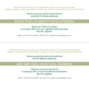 Home » 8.11.2019 ob 19. uri: svečanost ob 90-letnici Slovenskega doma. Histrionski dom, Zagreb