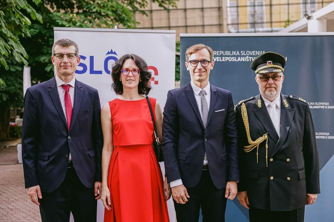 Dan prej, 20. junija, je slovensko veleposlaništvo na Hrvaškem organiziralo sprejem na vrtu Arheološkega muzeja. Udeležili so se ga pomembni predstavniki političnega, gospodarskega, kulturnega in družbenega življenja na Hrvaškem, predstavniki drugih diplomatskih predstavništev na Hrvaškem, pripadniki slovenske skupnosti ter številni Slovenci, ki živijo ali delajo na Hrvaškem. Veleposlanik Gašper Dovžan je v svojem govoru spomnil na dogodek izpred 33 let, ko sta Slovenija in Hrvaška skupaj razglasili svojo državnost, in na vse tiste, ki so branili našo suverenost. Sprejem se je nadaljeval s tradicionalnimi slovenskimi jedmi in glasbeno spremljavo kvinteta Orkestra Slovenske vojske. (tbb, akm)