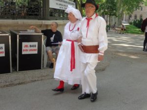 - Članica Slovenskega doma Marjeta Trkman Kravar s soprogom Antejem Kravarom v belokranjski noši na mimohodu narodnih noš v parku Zrinjevac.