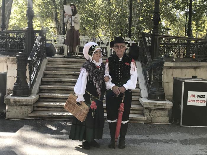 - Člana Slovenskega doma Zagreb: Stanka Herak in Franc Rop v gorenski narodni noši.