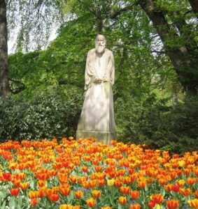 - Spomenik Primoža Trubarja (kipar Fran Berneker, beli marmor, 1910) v Ljubljani v Trubarjevem parku. Foto: https://www.wikiwand.com/sl/Primo%C5%BE_Trubar#/google_vignette