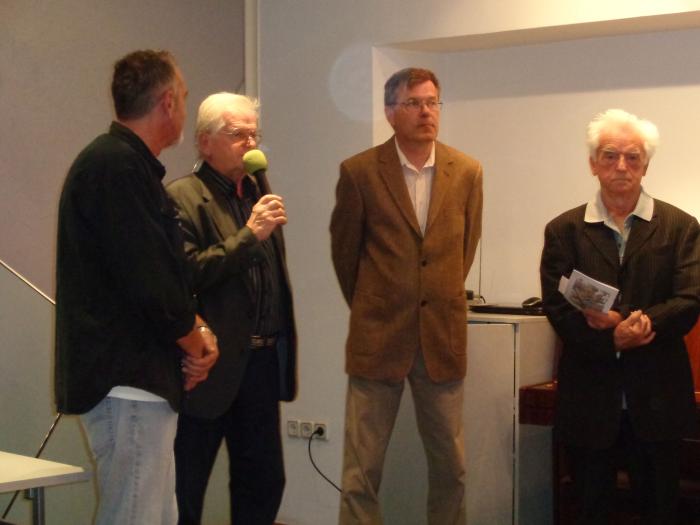 - Željko Bedić iz portala Ludvig dizajn, Darko Šonc, Rolando Nikčević iz združenja Fijaker in kustos razstave prof. Nedeljko Tintor (z leve).