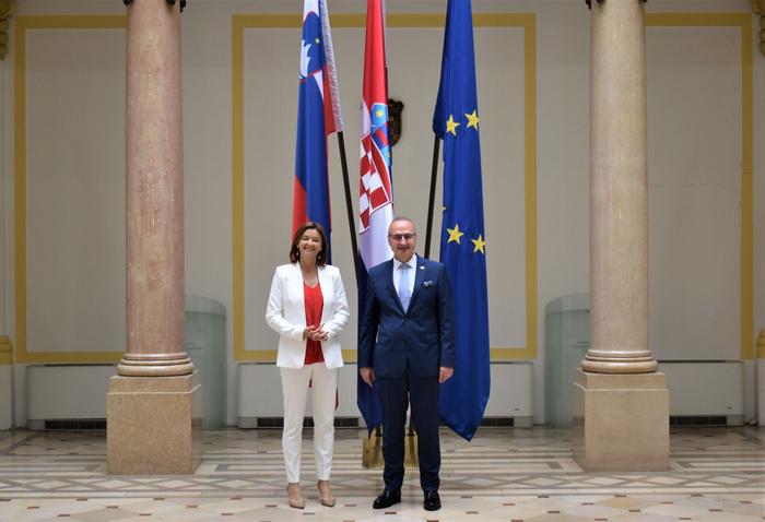 Obisk v Zagrebu je ministrica Fajon začela na slovenskem veleposlaništvu, kjer se je srečala s predstavniki slovenske narodne skupnosti na Hrvaškem, predsednico Zveze slovenskih društev na Hrvaškem Barbaro Riman, častnim predsednikom Zveze slovenskih društev na Hrvaškem in predsednikom Slovenskega doma Zagreb Darkom Šoncem in poslanko v saboru Barbaro Antolić Vupora. Zahvalila se jim je za njihova prizadevanja za ohranjanje slovenskega jezika in kulture ter poudarila pomen političnega zastopstva na vseh ravneh za razvoj slovenske narodne skupnosti na Hrvaškem.