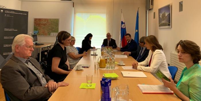Ministrica Tanja Fajon s predstavniki slovenske skupnosti na slovenskem veleposlaništvu. Foto: Tamara Plankar