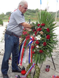 Predsednik Sveta slovenske narodne manjšine Mesta Zagreb Darko Šonc polaga spominski venec vsem žrtvam fašističnega koncentracijskega taborišča v Kamporju na Rabu. Foto: akm