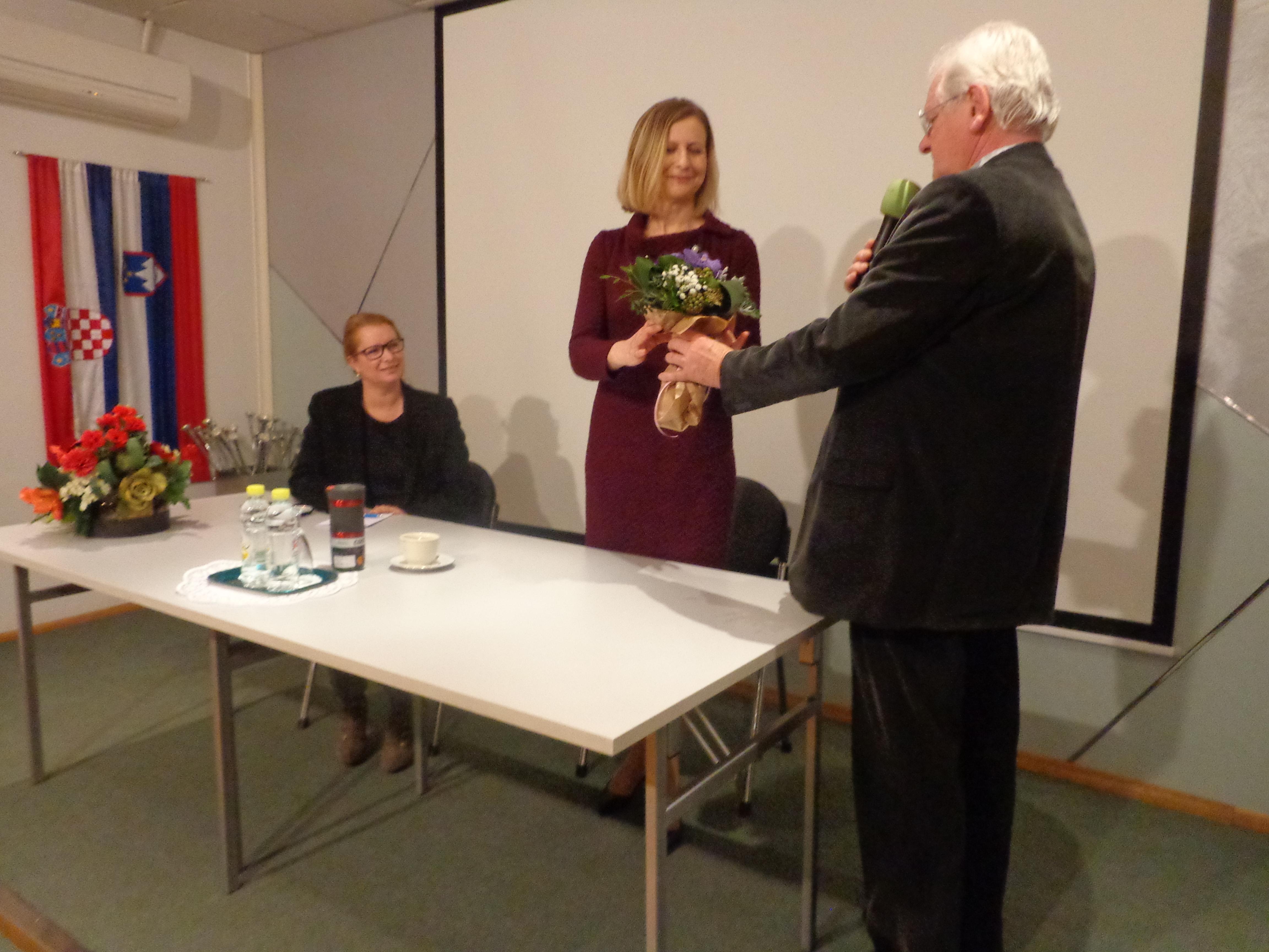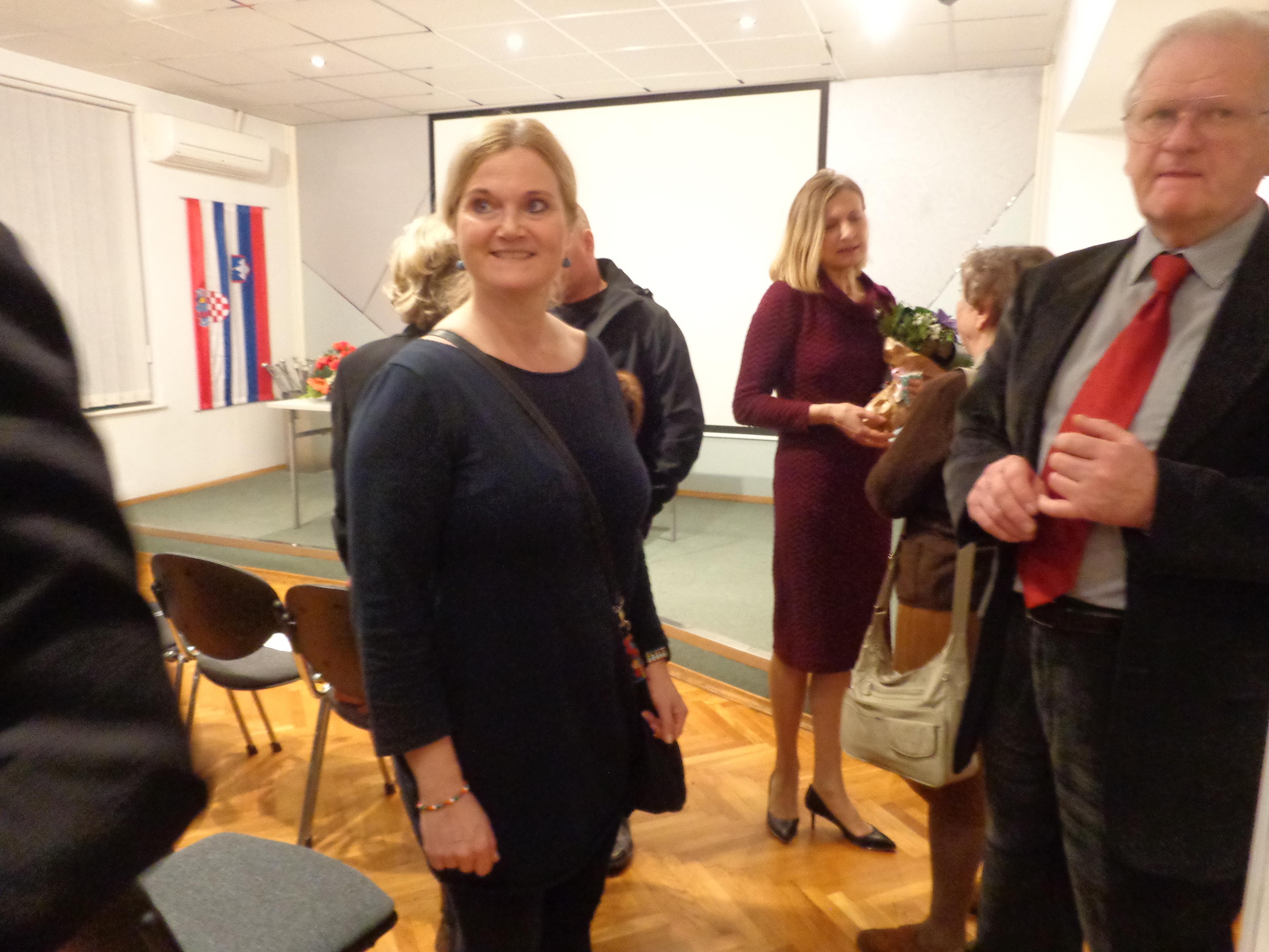 Tokrat se je novinarka Radia Slovenija Tanja Borčić Bernard pogovarjala s slovensko veleposlanico na Hrvaškem Smiljano Knez, ki je vodenje slovenskega veleposlaništva prevzela pred dvema letoma. Beseda je tekla o gospodarskem in kulturnem sodelovanju med Slovenijo in Hrvaško, aktualni politični situaciji, njenih obiskih v skoraj vseh hrvaških županijah, vlogi žensk v visoki diplomaciji in drugih zanimivih temah. Veleposlanica se je dotaknila tudi manjšinske problematike in delovanja slovenskih društev na Hrvaškem, katerih delo je tudi ob tej priložnosti pohvalila in poudarila, da odlično opravljajo svoje delo. Veleposlanica se je po pogovornem večeru družila s člani Slovenskega doma. (akm)