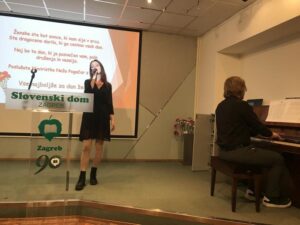 V čast mednarodnega dneva žensk je Slovenski dom Zagreb gostil nepozaben večer, ki je združil kulturo in praznovanje. Predsednik Slovenskega doma Zagreb, Darko Šonc, je s toplim pozdravom nagovorili obiskovalce, ki prišli počastit ta poseben dan. Na odru sta se obiskovalcem predstavila dva izjemna talenta, študenta glasbene akademije v Zagrebu – Neža Pogačar in Vitomir Janez Zagode. Neža je s svojim čudovitim vokalom očarala občinstvo, Vitomir pa je na klavirju spremljal vsako njeno noto. Prešernova dvorana je bila napolnjena z melodijami in aplavzi, ko sta izvajala zimzelene pesmi kot so Med iskrenimi ljudmi, Mlade oči, Orion in Brez besed. Vsaka izvedba je bila prejeta z navdušenjem, ki se je odražalo v toplih aplavzih prisotnih. Po končanem odličnem glasbenem programu je predsednik v znamenje spoštovanja in praznovanja razdelil rdeče nageljne ženskemu delu občinstva. Večer se je nadaljeval z druženjem v prijetnem vzdušju Kluba Moja dežela, kjer so se stkale nove vezi in obujali spomini. Dogodek je bil sklenjen s skupinskim fotografiranjem, ki bo služilo kot trajen spomin na čudovito praznovanje. (nk)