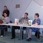 - Goran Vojnović v družbi Anite Peti – Stantić in študentk slovenščine.