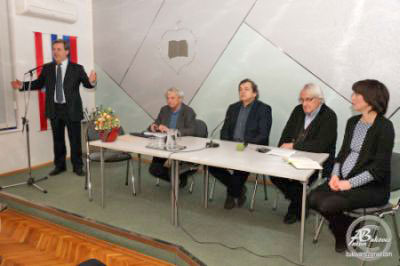 Literarni večer o Edvardu Kocbeku: Darko Šonc, Predrag Matvejević, Zdravko Zima, Branko Šömen, Dora Fišter Toš. Foto: Antun Bukovec