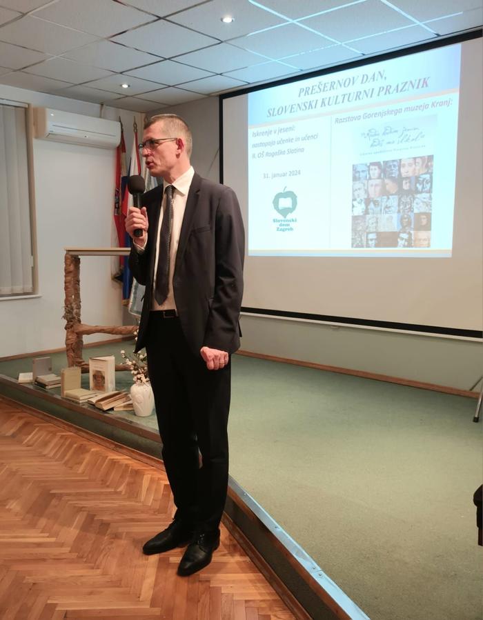 Dogodka se je udeležil tudi veleposlanik Republike Slovenije na Hrvaškem, Gašper Dovžan, ki se je Gorenjskemu muzeju Kranj iskreno zahvalil za čudovito razstavo in dodal, da je Prešeren izjemno cenjen ter da ima na Hrvaškem svoje ulice, po zaslugi Slovenskega doma Zagreb pa tudi svoj spomenik na Bundeku. Ni skrival navdušenja nad nastopom učencev II. OŠ Rogaška Slatina, ki jih je pohvalil in se zahvalil njihovim mentoricam, ker jih spodbujata, da pripravljajo tako odlične programe. Razstavo je odprl s čestitanjem slovenskega kulturnega praznika in poudaril: »V posebno čast mi je, da se ob kulturnem prazniku letos spominjamo z neko gorenjsko noto, tudi sam namreč prihajam z Gorenjske, tako da sem tudi ob tem zelo ponosen.” (akm)