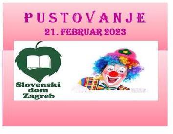 Na pustni torek so v Prešernovi dvorani zavladale maškare, pesem in veselo druženje članov Slovenskega doma Zagreb, ki so na koncu spontano zapeli slovenske pesmi. Predsednik Slovenskega doma Zagreb in SSNM MZ Darko Šonc je izrazil zadovoljstvo, da so se člani zbrali v tako velikem številu ter se zahvalil Stanki Novković in članicam ustvarjalne delavnice Šopek: izdelale so čudovite maske, ki so si jih lahko nadeli tudi obiskovalci brez mask.