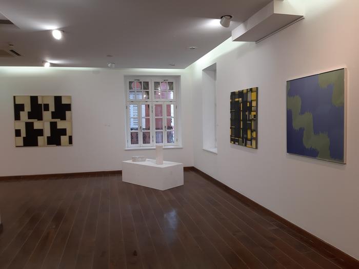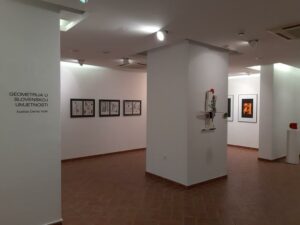 Razstava je obsegala 56 del, med katerimi so nekatera sestavljena ali pa so kompozicije. Prevladuje večji format: objekti, reliefi, skulpture, računalniška grafika na papirju ali plastiki, intarzija iz papirja, klasična grafika (visoki tisk in sitotisk), risbe na papirju s flomastrom, ogljem ali tušem, na platnu olje in akril, na lesu jajčna tempera ali akril, aerografija na valoviti lepenki. To razstavo bo dopolnila še razstava Mala geometrija v Trstu (razstavišče DoubleRoom arti visive), kjer bodo od 18. maja do 30. junija 2023 na ogled dela manjšega formata, skulpture in objekti ter animacije in video dela s področja geometrijske abstrakcije.