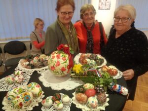 Tako so naše Šopkovkee 20. marca, tik pred veliko nočjo, pripravile razstavo, na kateri smo si lahko ogledali odlična dela, od slikanja na platno in druge površine z akrilom v tehniki prelivanja, torej slikanja s prelivanjem barv, do ročnih del iz papirja in umetnosti velikonočnega okraševanja jajc na več načinov. Lepo, prijetno za oko in predvsem narejeno z veliko truda.