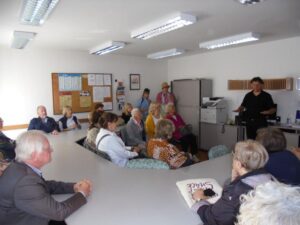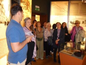 Študijsko potovanje je zaključeno v Posavskem muzeju Brežice z ogledom razstave Pod devetimi zastavami – Posavje 1900 – 1990 ter ogledom znamenite Viteške dvorane, kjer se odvijajo številne kulturne prireditve. (akm)