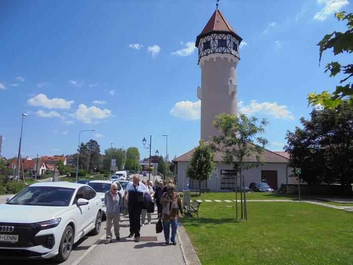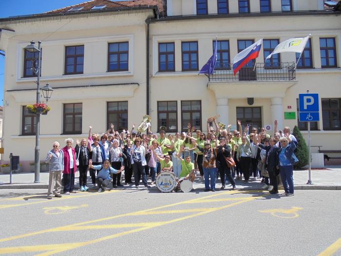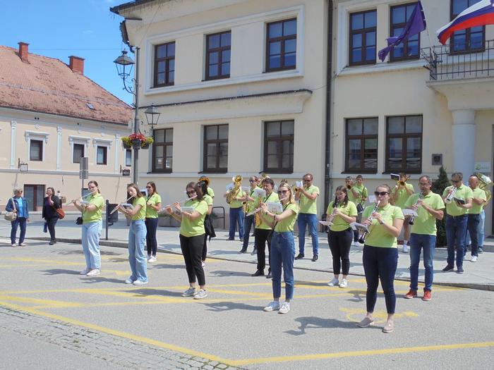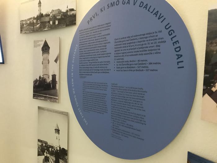 Obiskali so tudi nedavno prenovljen vodni stolp iz leta 1914 – simbol Brežic, kulturni spomenik lokalnega pomena z značilnostmi zgodovinsko-tehniškega spomenika, kjer jih je sprejela direktorica Posavskega muzeja Brežice Alenka Černelič Krošelj, s katero slovenska skupnost iz Zagreba že nekaj časa uspešno sodeluje na kulturnem področju. Člani so opoldne pred občino Brežice v izvedbi pihalnega orkestra KD GPO Loče, prisluhnili brezčasni skladbi Slavka Avsenika Na Golici – najpogosteje izvajani instrumentalni skladbi na svetu, ki letos praznuje 70 let od nastanka.
