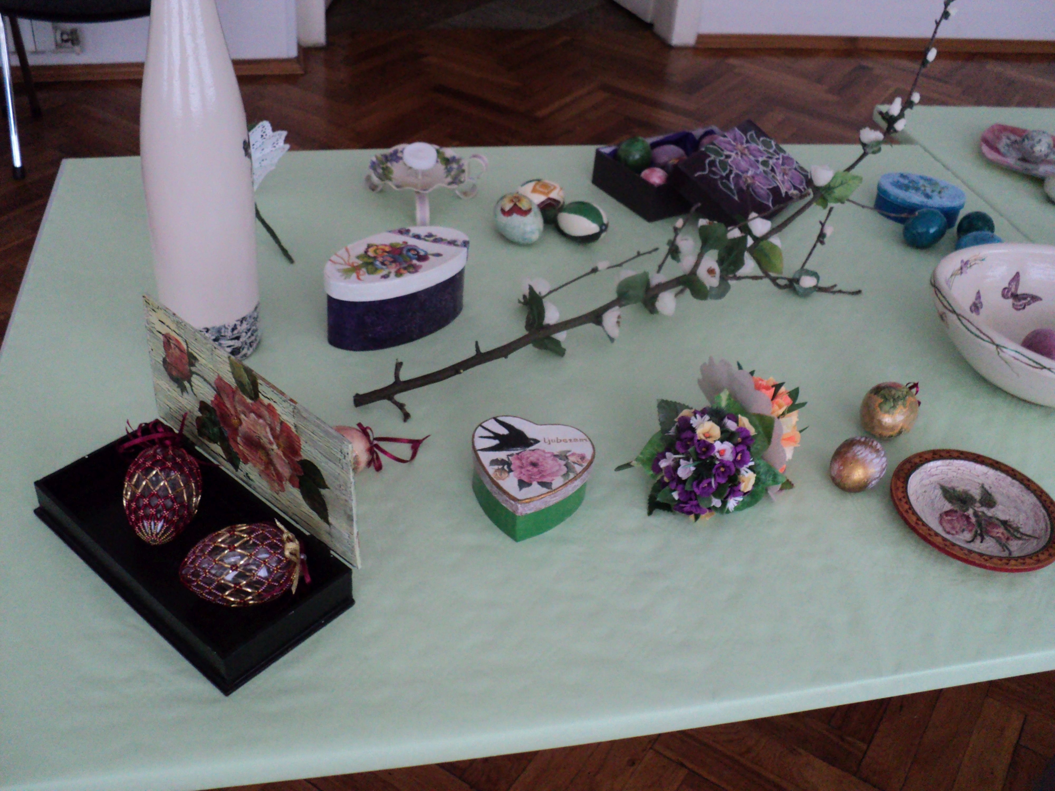 Zagreb – V sredo, 12. aprila 2017, je v Slovenskem domu na ogled postavljena razstava del ustvarjalnih članic Šopka. Poleg v tem času nepogrešljivih pirhov so na ogled tudi številni uporabni predmeti (sklede, škatlice, steklenice …), ki so jim pridne roke vdahnile novo svežino. Obiskovalci so bili nad razstavo navdušeni in so domov zagotovo odšli polni novih idej, kako popestriti prihajajoče velikonočne praznike. (nr)