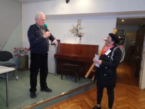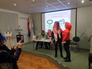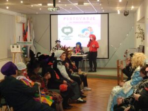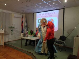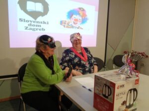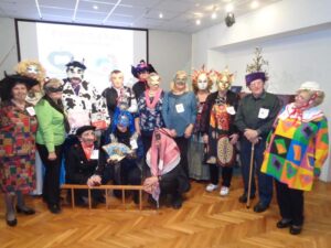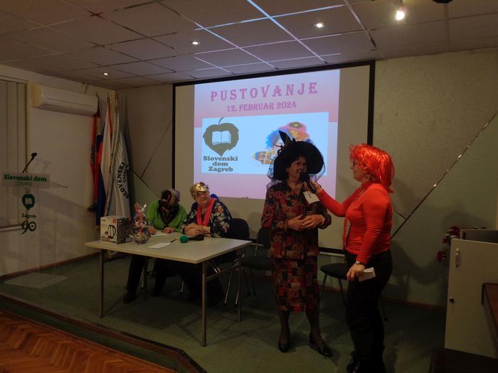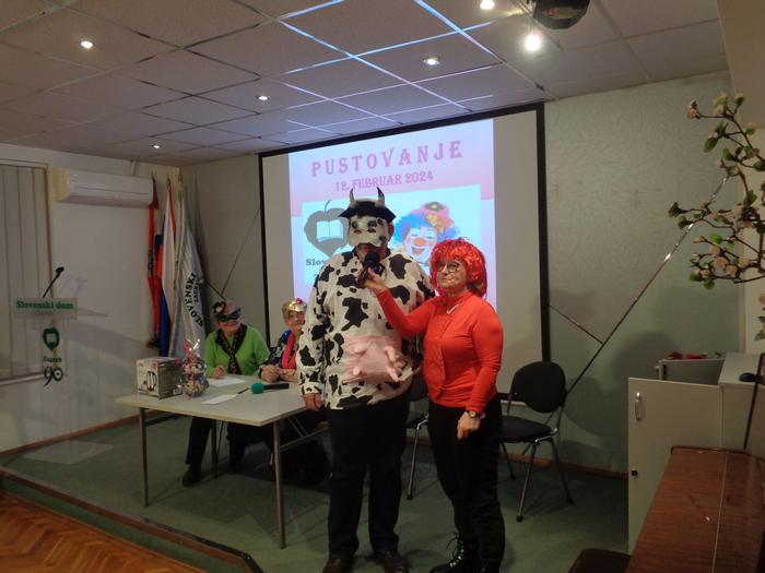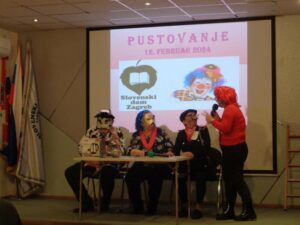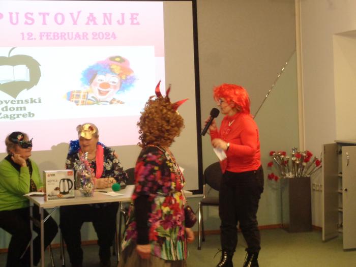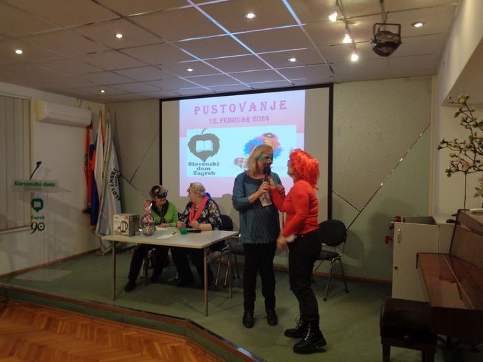 Na tradicionalni pustni zabavi v Prešernovi dvorani Slovenskega doma Zagreb so kraljevale maškare, smeh, veselje in pisani kostumi: od Marije Antoinete, Benečank, Dolenjk, Štajerk, čarovnice z Griča, do dimnikarja, klovna, kravic, havate, dame iz Mokric, dame v teniskah … Za tiste, ki so prišli brez mask, so tudi letos poskrbele pridne članice ustvarjalne delavnice Šopek in jim izdelale zanimive maske.