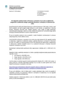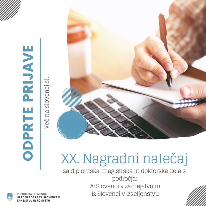Ljubljana – Urad Vlade RS za Slovence v zamejstvu in po svetu je ojavil XX. nagradni natečaj za diplomske, magistrske in doktorske naloge s področja Slovencev v zamejstvu in Slovencev po svetu.