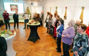Viljem Bizjak je kao pojedinac pridonio stvaranju našega Društva – u teškim je vremenima pomogao očuvanju kulturne baštine Slovenaca u Zagrebu. Njemu u spomen smo 20. prosinca u Društvu svečano otkrili ploču sa zahvalom za to plemenito djelo. Za dobru atmosferu pobrinuo se naš Pjevački zbor Slovenski dom, koji je pjevao uz pratnju harmonike. Posjetitelje je pozdravio predsjednik Darko Šonc – ukratko je predstavio život i djelo pekarskoga majstora Viljema Bizjaka, osnivača Tovarne keksov Bizjak i njegovo značenje za naše Društvo, te pozvao posjetitelje na otkrivanje spomen-ploče koju su izradile članice naše kreativne radionice Šopek. Potom je sve prisutne pozvao da pogledaju adventsku izložbu prekrasnih Šopekovih radova. Večer smo proveli u ugodnoj i veseloj predbožićnoj atmosferi, uz dobru hranu i piće. (nk)
