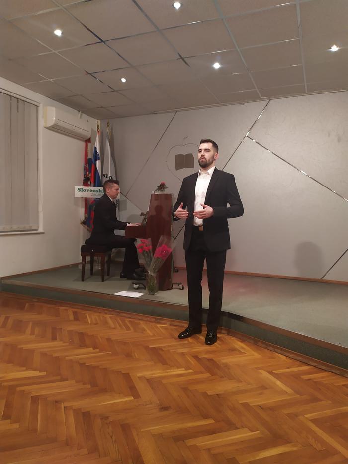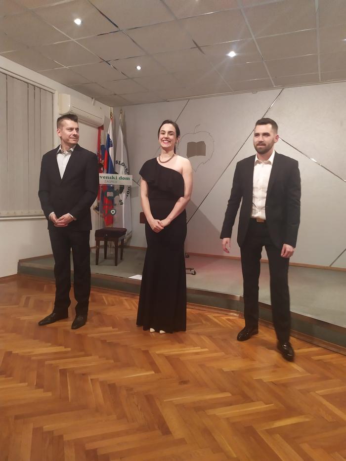 Koncertom klasične glazbe na čijem su repertoaru bile slovenske i talijanske melodije, u Prešernovoj dvorani Slovenskoga doma Zagreb, obilježen je Međunarodni dan žena. Član Društva, tenor Matic Zakonjšek, sopranistica Sara Žuvela te pijanist Vjekoslav Babić zanosnim melodijama prožetim iskrenim emocijama priredili su odličnu atmosferu, oduševivši tako mnogobrojne članice koje su izuzetnu izvedbu nagradile dugotrajnim aplauzom.