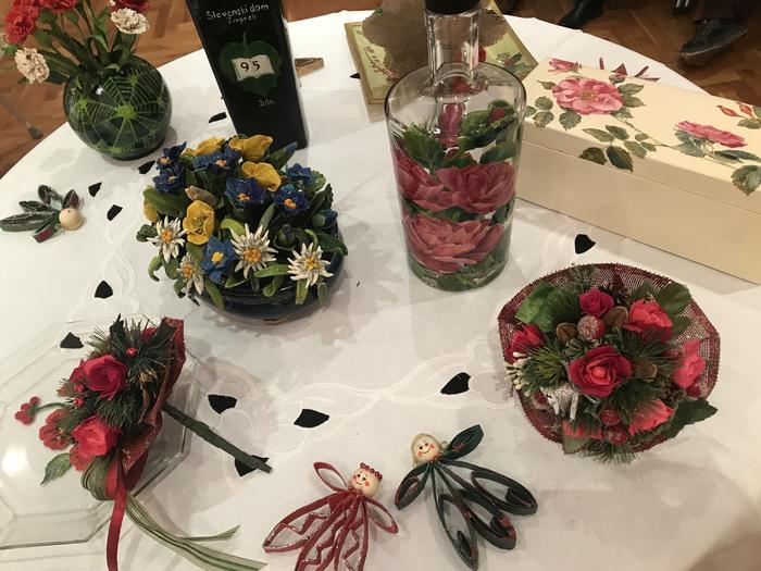 Prešernovu dvoranu Slovenskoga doma, 18. prosinca 2024. ispunilo je blagdansko ozračje koje su pripremile članice kreativne radionice Šopek, izloživši svoje slike, jaslice, božićne buketiće i ukrase raznih boja i oblika.